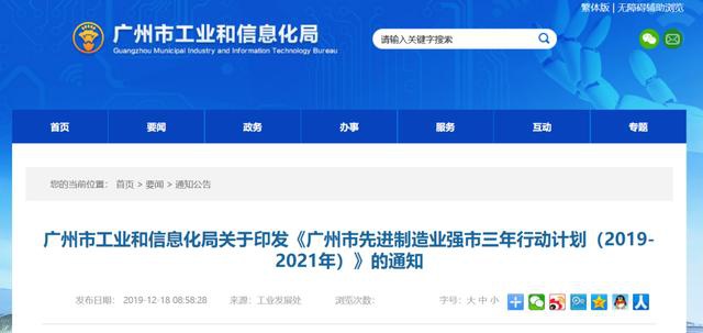 廣州市工業和信息化局關于印發《廣州市先進制造業強市三年行動計劃(2019-2021年)》的通知